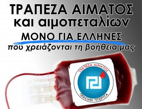 Και για να μην το πολυκουράζουμε: Ξέρουν οι υπεύθυνοι της Χρυσής Αυγής αλλά και οι πρόθυμοι αιμοδότες ότι το αίμα που θα συγκεντρώσουν δεν γίνεται για πρακτικούς, πέρα από τους ανθρωπιστικούς λόγους να δοθεί μόνο σε Έλληνες; Εκτός και αν το ξεχωρίζουν από το χρώμα ή μιλάει ελληνικά...